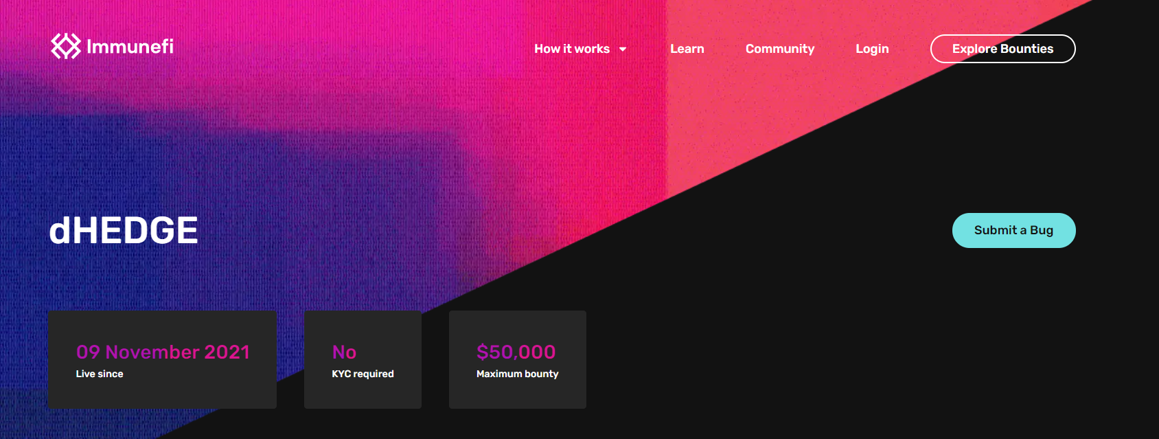 Submission of a bug will be via dHEDGE’s Bounty page on Immunefi.