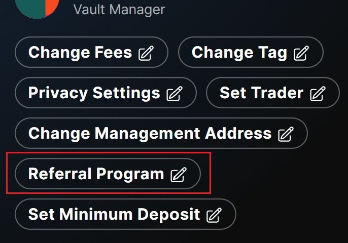 As a manager, the first step in setting up a referral program for your vault is to enable it in the User Interface (UI) within the Manager webpage of your vault.
